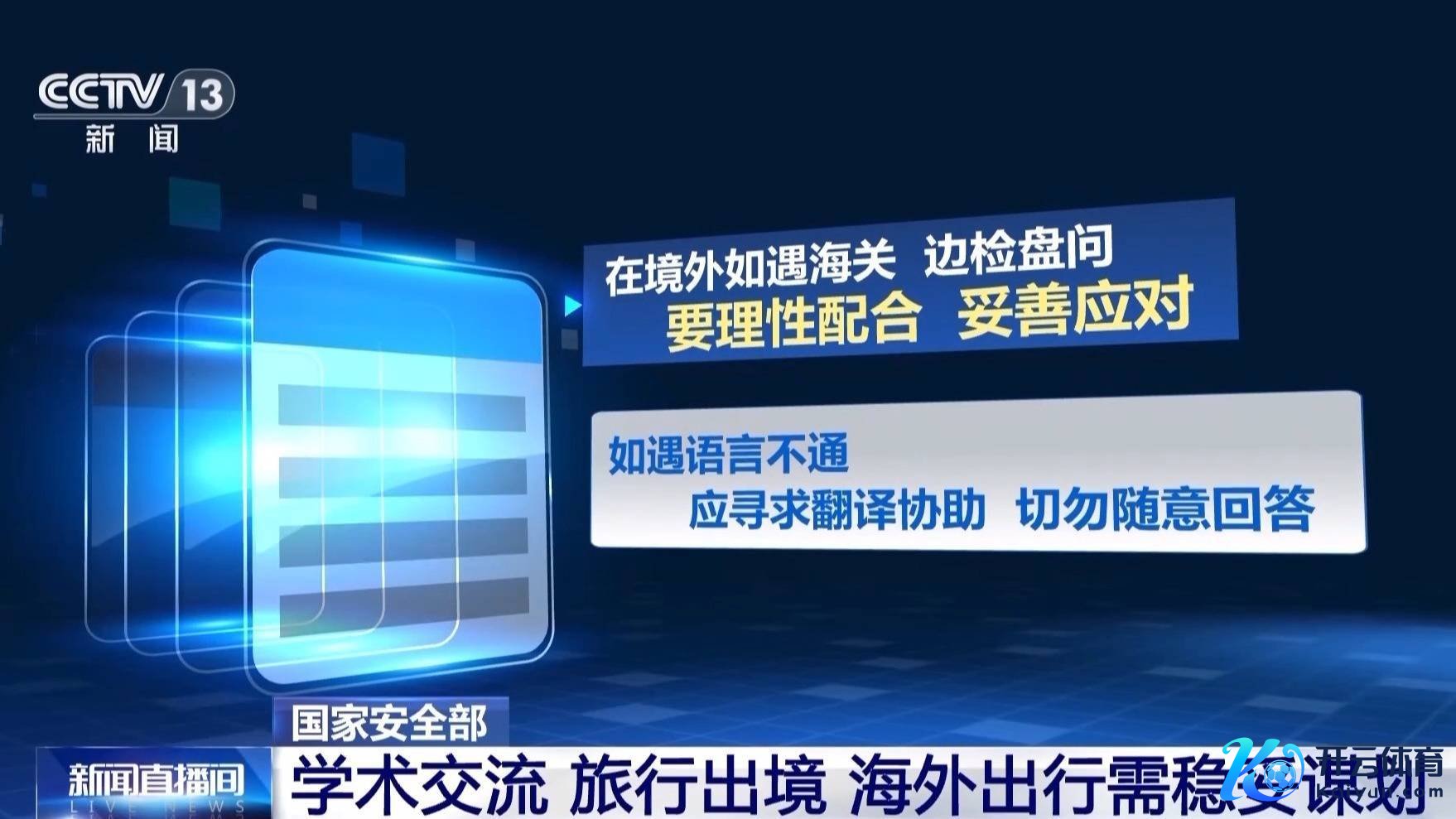 国度安全机关请示,因学术疏通、投入会议或个东说念主旅行需出境时,请淡雅检考证件灵验期,合理安名次程,并严格死守高校的出洋(境)措置轨制,依规实践报批、报备顺次。
