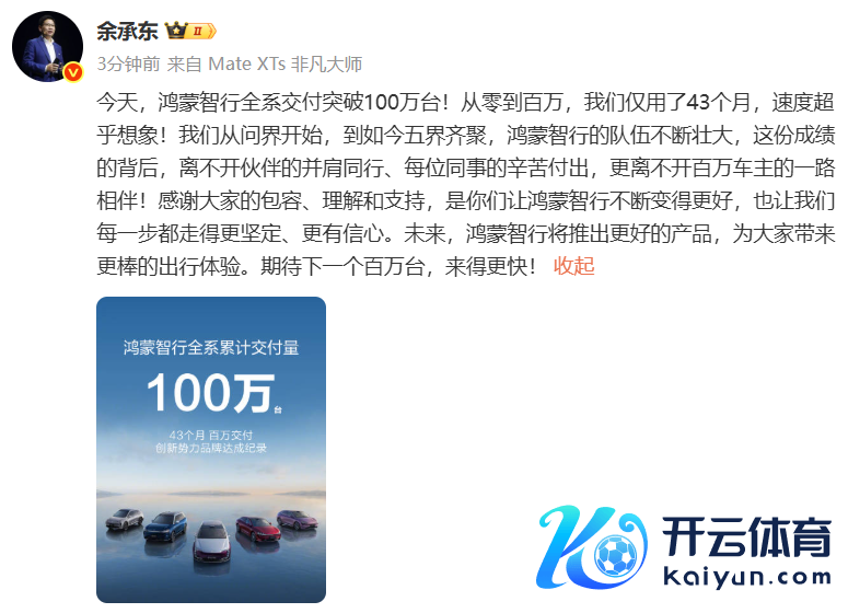 余承东:鸿蒙智行全系托福打破100万台余承东:鸿蒙智行全系托福打破100万台